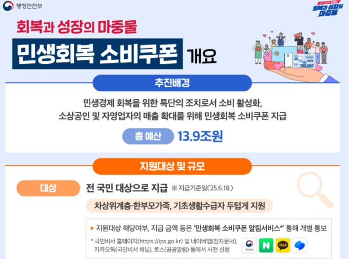 민생회복 소비쿠폰은 정부가 경기 활성화와 서민 생활 안정화를 목적으로 추진하는 대표적인 소비 촉진 정책이다.